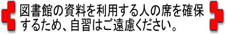 館内にある閲覧席は、図書館の資料を使っての調べものや、読書をするためのものです。参考書や教科書を持ち込んでの<勉強>は、図書館本来の利用の妨げとなります。