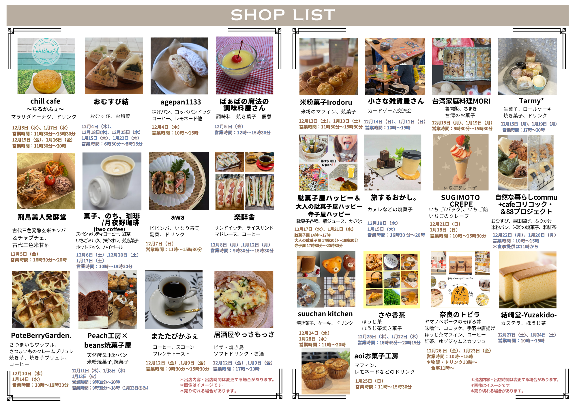 12月〜1月の出店舗はこちら⇩をご覧ください。